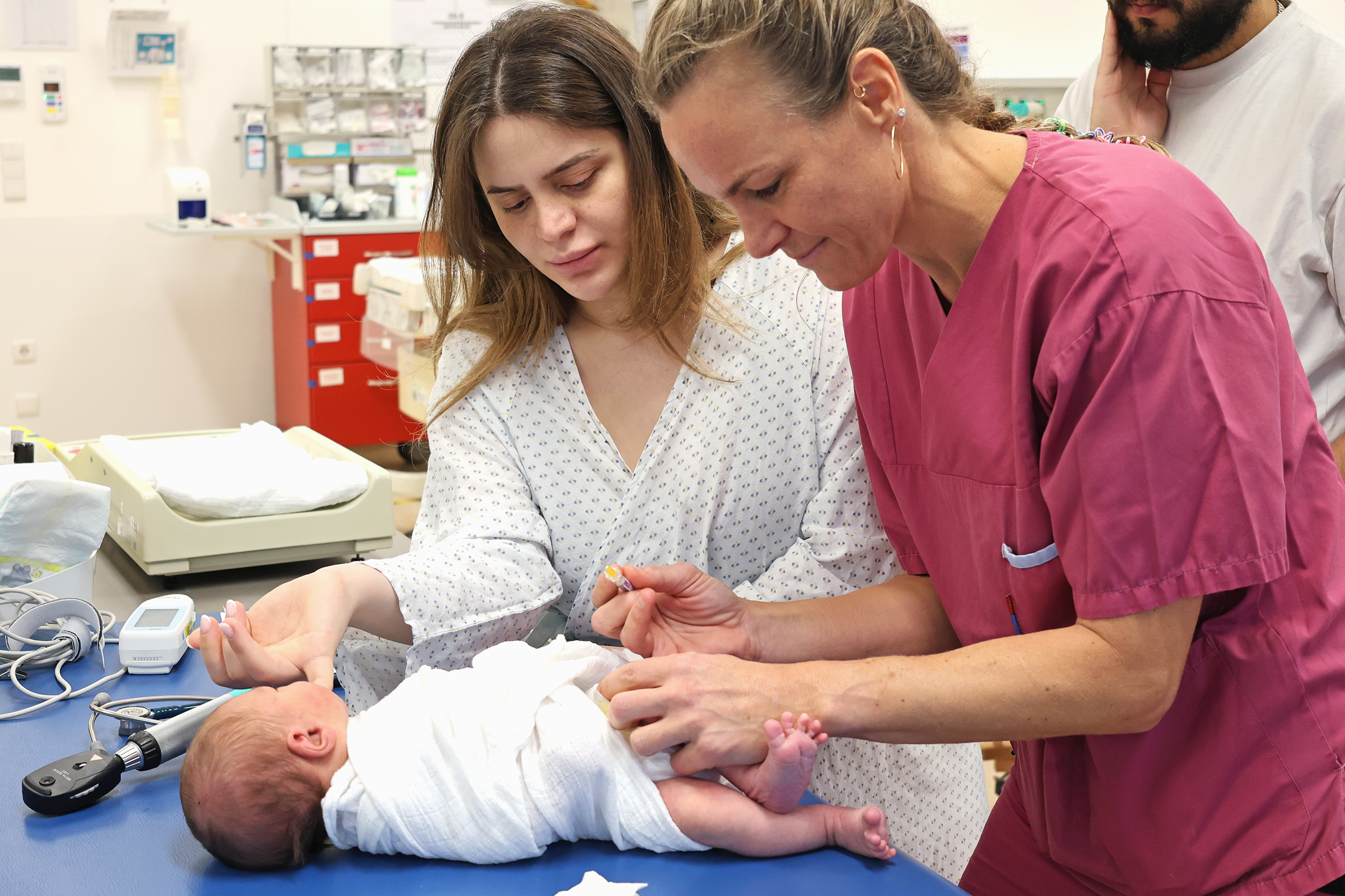 Jeden Vormittag erfolgt eine kinderärztliche Visite auf den Wochenbettstationen.