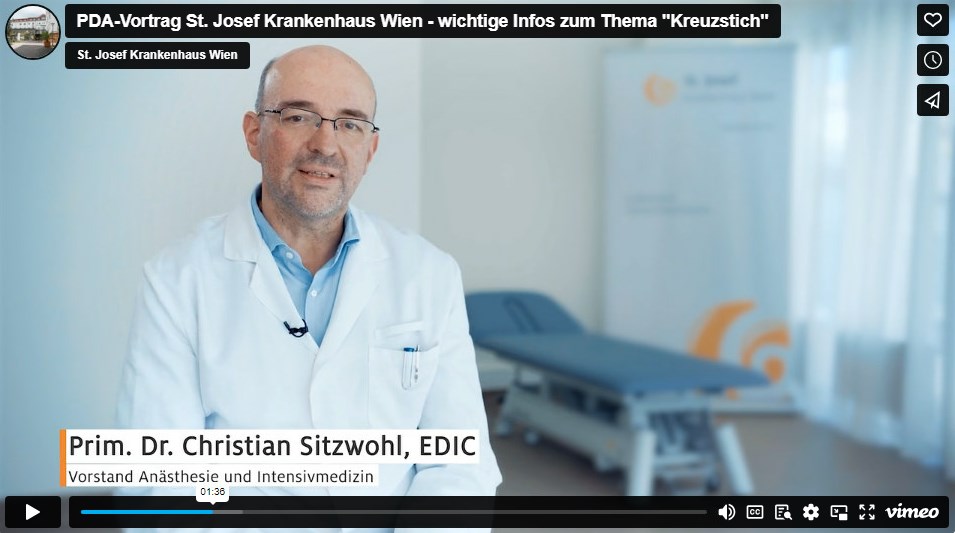 Es ist uns im St Josef Krankenhaus Wien ein besonderes Anliegen, dass Sie gut informiert in die Geburt Ihres Kindes gehen. Dazu möchten wir Ihnen auch die Möglichkeit geben, sich möglichst frühzeitig und entspannt über die Erleichterung des Wehenschmerzes mittels Kreuzstich (Periduralanästhesie / PDA) zu informieren.